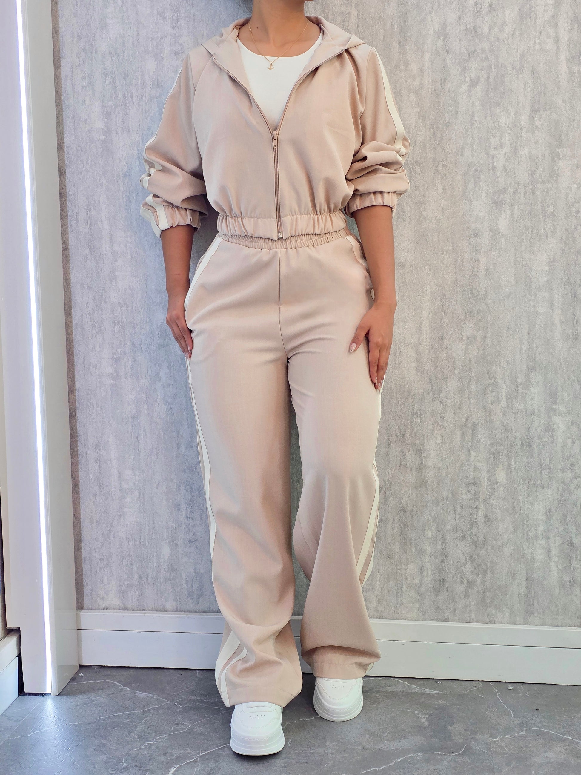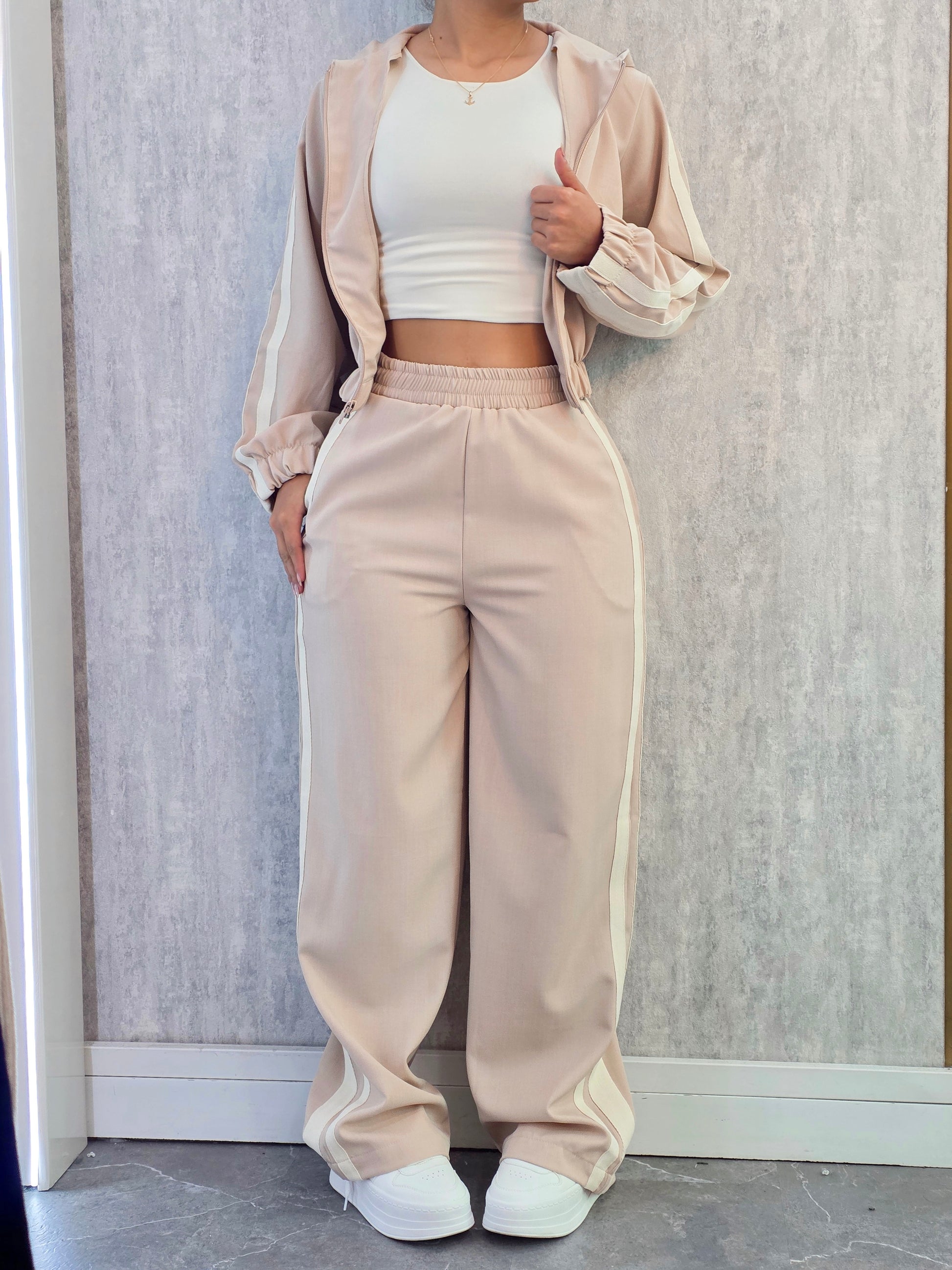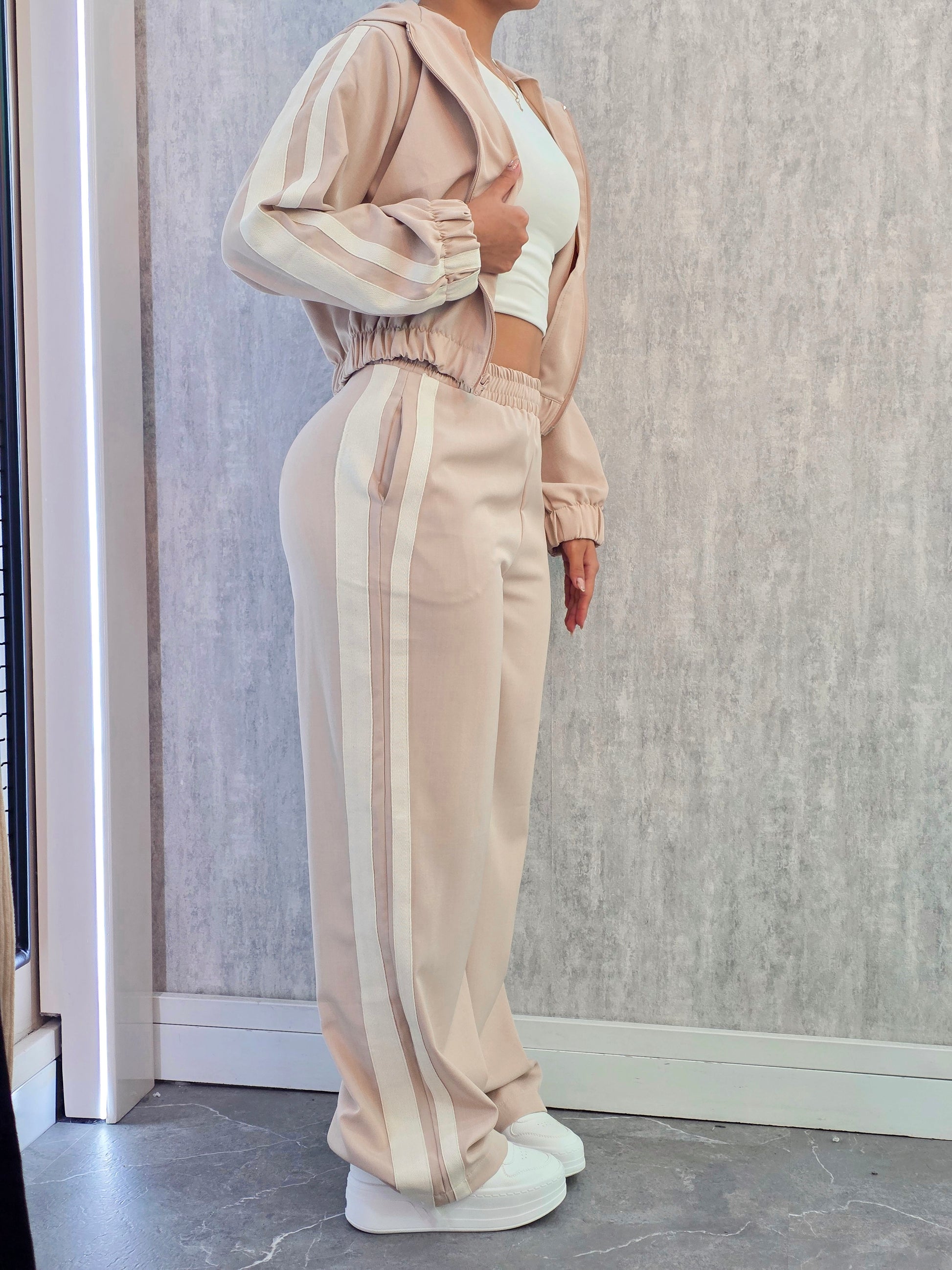 Sudadera de silueta cómoda, con diseño clásico y detalle de raya blanca en los costados que aporta un estilo deportivo y actual.